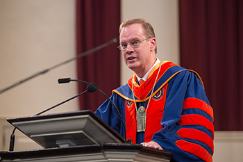 Under the chapel dome, Syverud spoke to an audience of hundreds and many more watching online, as he challenged the University to aim higher.