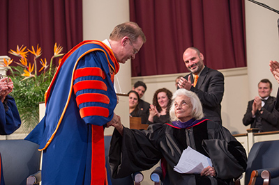 Representing the Board of Trustees, Renée Schine Crown ’50, H’84, a Syracuse University life Trustee, spoke of inauguration day as the beginning of a new chapter in the University’s history.