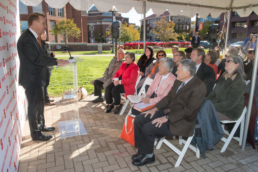Chancellor Syverud also recognized how the ramp “further reflects Syracuse’s long history of commitment to accessibility and inclusion,” from the College of Law’s program in law and disability studies—the first in the nation—to the work of the Burton Blatt Institute at the University and programs like Inclusive U.