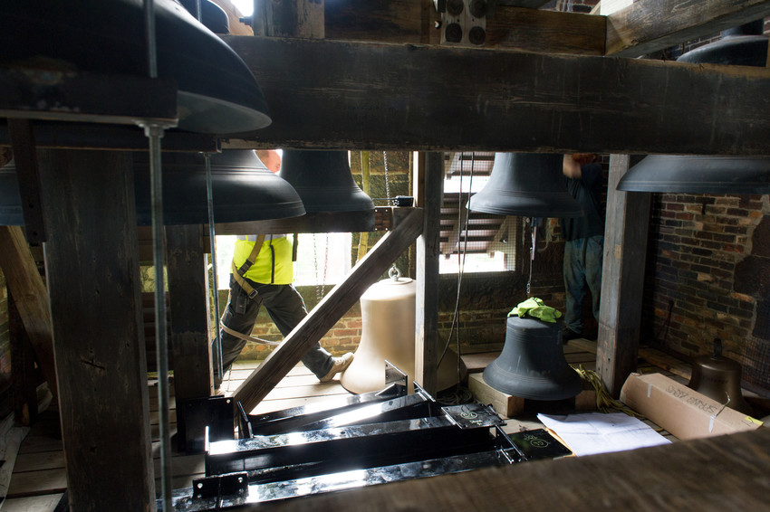 The project, which has received support from alumni and other friends, includes the installation of the new bells, maintenance on the existing bells and structural supports, and installation of a programmable automatic chiming system that could operate while students are away on break and chiming of bells on the hour or quarter hour.