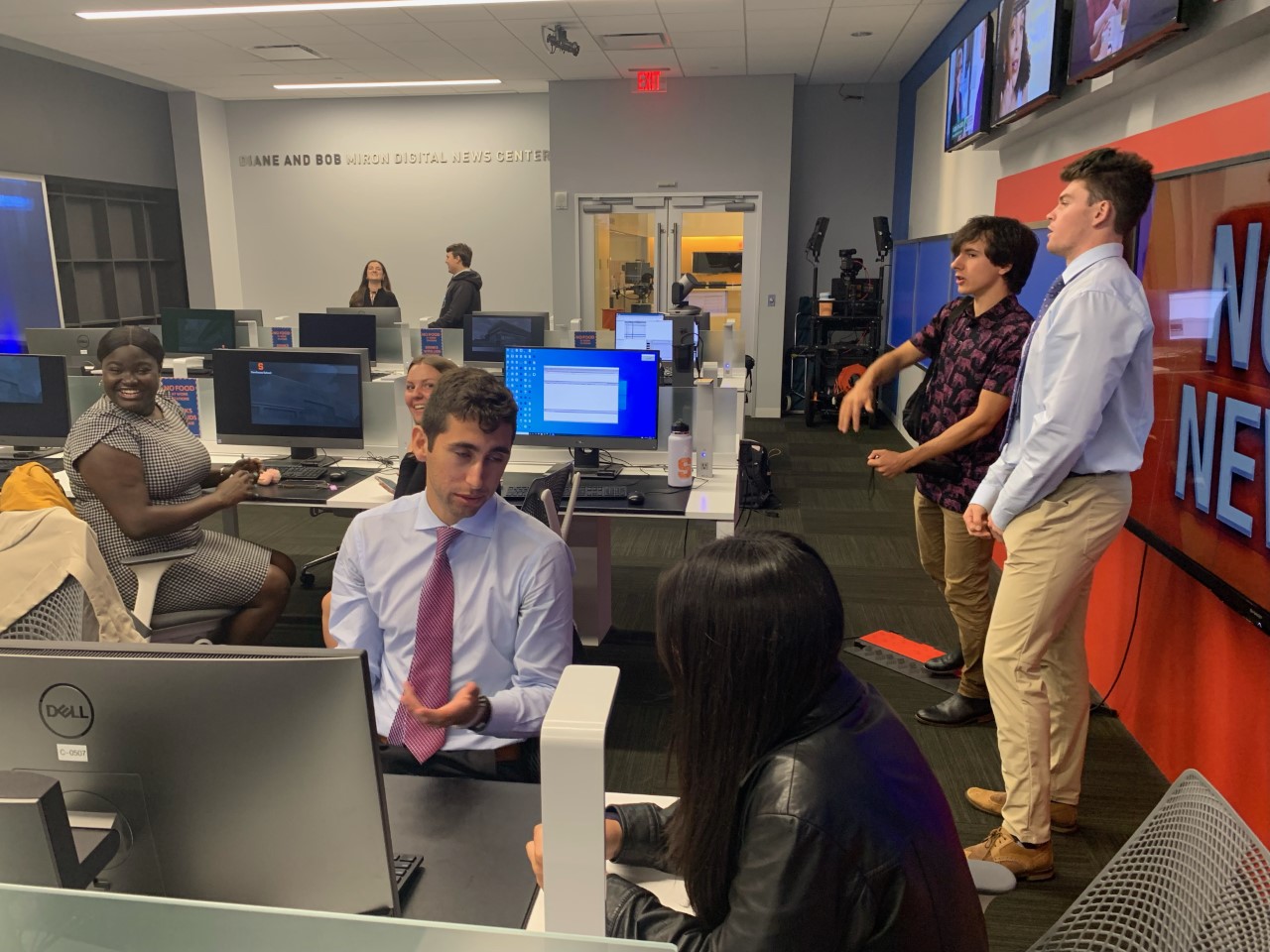 More than a dozen students from the Maxwell School of Citizenship and Public Affairs made a field trip to the television studios at the S.I. Newhouse School of Public Communications this fall for a hands-on lesson in how to make foreign affairs topics relatable to the American public.