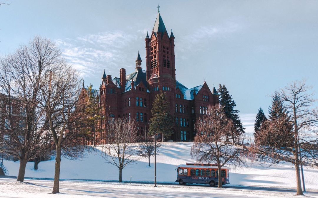 ‘Cuse Trolley rolling by on a winter day in Syracuse. (Photo by @fortunato_photo on Instagram)