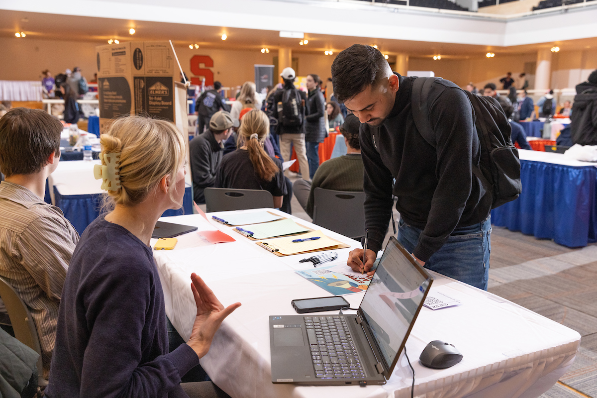 Students attend the spring involvement fair at Goldstein Auditorium in the Shine Student Center. (Photo by Angela Ryan)