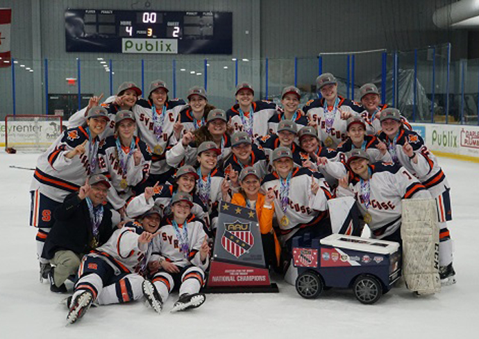 The Orange completed their 2024-25 season in the College Hockey North Women’s Division undefeated, easily securing their place in the AAU National Championship, held March 6-9 in Jacksonville, Florida. But clinching a spot in nationals didn’t mean the work stopped.