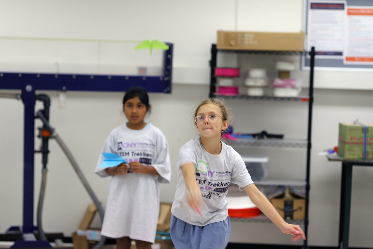 A friendly competition is brewing in the corner of a basement classroom in Link Hall during the annual STEM Trekkers summer program, where students are participating in a time-honored ritual: seeing who can build a paper airplane that travels the farthest.