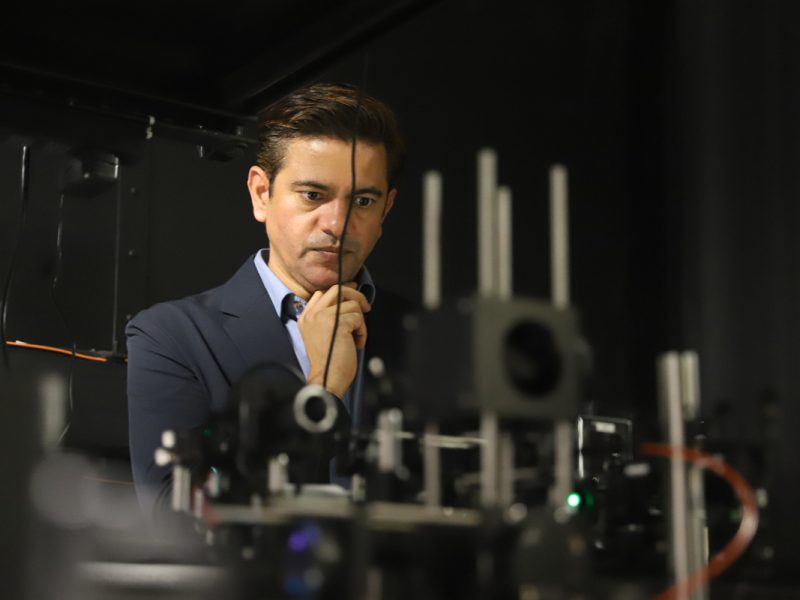 A fan watches a Syracuse vs. Notre Dame football game in the JMA Wireless Dome. (Photo by Marilyn Hesler)